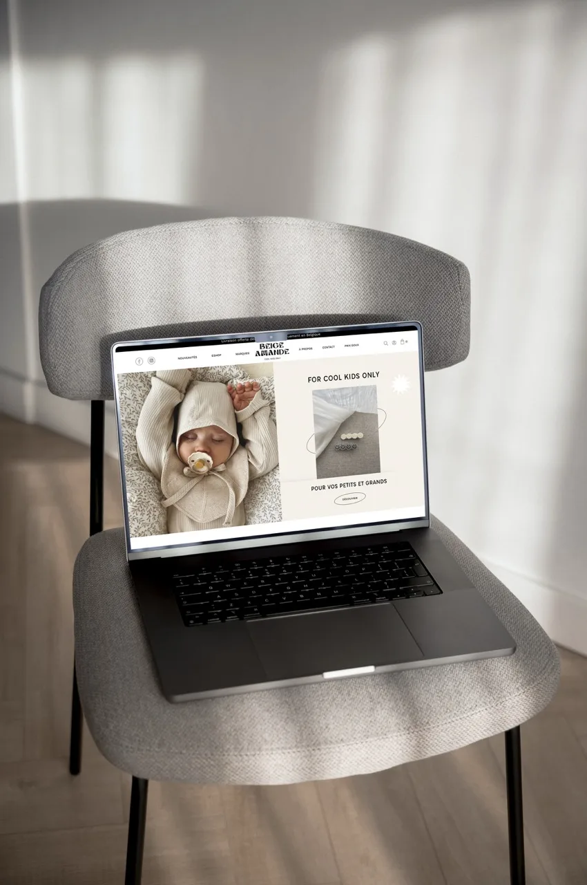 Site e-shopCréation du site Eshop, doux et minimaliste. Beige Amande offre des vêtements pour enfants conçus pour accompagner chaque aventure ainsi que des jouets originaux et décalés.